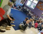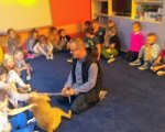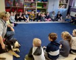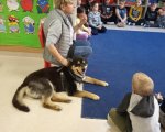Dnia 22 października wychowankowie klas 1d, 1e, 1f gościli podczas zajęć świetlicowych niezwykłych gości wraz z ich opiekunami. Brali udział w zajęciach z psami: owczarkiem belgijskim malinois oraz mieszanką malamuta. Podczas zajęć opiekunowie psów z Centrum Pozytywnych Relacji Ludzie - Zwierzęta opowiadali w bardzo ciekawy sposób o umiejętnościach swoich pupili. Dzieci dowiedziały się, że podobnie jak one także psy chodzą do szkoły, gdzie tresowane są w odpowiedni sposób aby móc pomagać osobom, które tego potrzebują. Dzięki odpowiedniej tresurze są w stanie wykryć 30 minut wcześniej atak padaczki, zawał serca oraz spadek cukru we krwi u osób chorych na cukrzycę. Pomagają osobom niepełnosprawnym np. w podjęciu gotówki z bankomatów, w rozebraniu z ubrania, czy przyniesieniu z lodówki odpowiedniej rzeczy do zjedzenia. W zamian od człowieka oczekują tylko albo aż miłości, miłości bezwarunkowej, takiej jaką obdarzają one nas - ludzi. W końcu od dawna wiadomo, że pies to najlepszy i najwierniejszy przyjaciel człowieka.