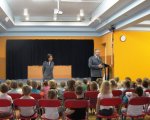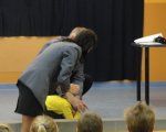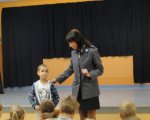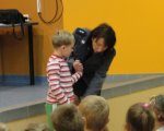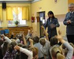 Dzieci z oddziałów przedszkolnych spotkały się z niecodziennymi gośćmi. Państwo policjanci przyjęli nasze zaproszenie, aby przybliżyć dzieciom tajniki swego zawodu, opowiedzieć o bezpiecznym zachowaniu się w domu i na ulicy, zademonstrować jaką przyjąć postawę wobec różnych zagrożeń. Goście wyczerpująco odpowiadali na pytania nurtujące dzieci, które chętnie zgłaszały się i udzielały odpowiedzi na pytania policjantów, którzy nagradzali je małymi upominkami.
