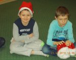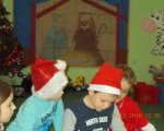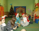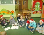 21 grudnia 2016, tuż przed Świętami Bożego Narodzenia, występ uczestników naszego koła miał szczególny charakter. Ubrani odświętnie i przystrojeni w czapki mikołajkowe prezentowaliśmy zimowo-świąteczny program. Rozpoczęliśmy od zaśpiewania popularnej pieosenki "Hu, hu, ha, nasza zima zła", potem czytana była książka "Fabryka Świętego Mikołaja" oraz wybrane wiersze o zimowej tematyce, zakończyliśmy natomiast intonując, wspólnie z przedszkolakami, kolędę: "Wśród nocnej ciszy". Zapewniam, że w tamtej chwili świąteczny nastrój już panował w naszych sercach.