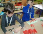 Nasze kolejne spotkanie z Fundacją OVO przebiegało pod znakiem wycinanki. Zabawy kolorowymi kartkami i nożyczkami były dla dzieci ciekawym wyzwanie rozwijającym nie tylko kreatywność i wyobraźnię, ale także wspierającym rozwój motoryki małej. W czasie zajęć udało się nam wyczarować leśny pejzaż, kolorowe kwiaty oraz fantazyjne wycinanki kurpiowskie. Każda wycinanka była przepiękna i jedyna w swoim rodzaju. Po raz kolejny w czasie zajęć rękodzielniczych nie tylko pogłębialiśmy naszą wiedzę i umiejętności, ale też świetnie się bawiliśmy, dlatego już ze zniecierpliwieniem czekamy na kolejne spotkanie ze sztuką tradycyjną.
