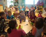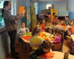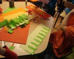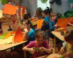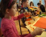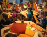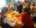 W czasie kwietniowego spotkania z rękodziełem na dobre porzuciliśmy średniowiecze i za sprawą wycinanek wybraliśmy się w fascynującą podróż na kurpiowszczyznę i do Łowicza. Jak się okazało używając kolorowego papieru, nożyczek, odrobiny skupienia i cierpliwości wyczarować można wspaniałe serwetki, serwety, łańcuchy, wycinankowe kwiaty… Spod naszych nożyc wychodziły piękne wycinankowe arcydzieła, a ich urodziwość wielokrotnie zaskakiwała samych autorów. Tworzenie przeróżnych kolorowych wycinanek bardzo nam się podobało, ale z ogromnym zniecierpliwieniem wyczekujemy już kolejnych zajęć, gdyż tym razem w naszej świetlicy mają pojawić się małe gryzonie, których podobno panicznie boją się słonie.