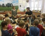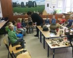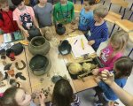 Na spotkaniu, w którym grupa archeologów przybliżyła tajniki swojego zawodu drugoklasiści poznali narzędzia pracy archeologa, dokumenty, zdjęcia z wykopalisk archeologicznych oraz eksponaty archeologiczne.