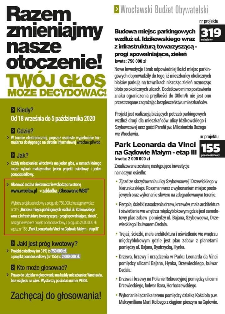 Głosować można elektronicznie wchodząc na stronę www.wroclaw.pl -> zakładka "Głosowanie WBO".