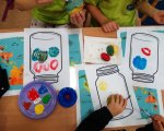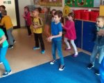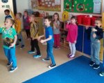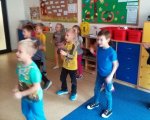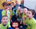W trzecim tygodniu października rozmawialiśmy o zdrowym odżywianiu i zdrowym trybie życia. Omawialiśmy prawidłową piramidę żywieniową i zastanawialiśmy się w jaki sposób skomponować zdrowe śniadanie. Przy użyciu gazetek reklamowych szukaliśmy zdrowych i niezdrowych produktów, a następnie stworzyliśmy prace plastyczne przy ich użyciu. Doskonale wiemy, że bardzo ważną sprawą w życiu każdego człowieka jest ruch, więc wykonywaliśmy również różne zabawy ruchowe. Nauczyliśmy się także czekoladowego tańca! W trakcie zajęć o supermocach owoców dowiedzieliśmy się jakie właściwości mają owoce i dlaczego warto je jeść. Przy pomocy przyniesionych przez nas gruszek, cytryn, jabłek i śliwek stworzyliśmy na kartkach własne słoiki z przetworami owocowymi. Po wszystkich zajęciach w końcu mogliśmy zjeść jabłka i gruszki z cytrynowym sokiem! Było pysznie!