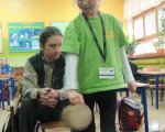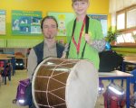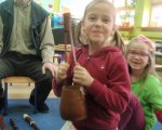 W ramach naszych cotygodniowych spotkań z Fundacją OVO, dzieci z grup pań Joli i Lidki, Asi, Pauliny i Justyny Jarek wzięły udział w wyjątkowych zajęciach- „Żywa Galeria Instrumentów”. W czasie zajęć odbyliśmy podróż w czasie- dowiedzieliśmy się, w jaki sposób powstały pierwsze bębenki i obejrzeliśmy instrumenty z różnych zakątków świata. Zobaczyliśmy i poznaliśmy techniki gry na takich instrumentach jak: typan, didgeridoo, flażolet, okaryna, lira korbowa czy drumla. Pan Witold pokazał nam, że grać można niemalże na wszystkim: na własnych dłoniach, na rurze od odkurzacza… Na koniec spotkania wysłuchaliśmy pieśni o smoku w języku białoruskim. Podróż do świata instrumentów bardzo nam się podobała i wszyscy z wielką ochotą przemienialiśmy się w muzyków.